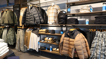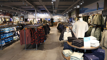 O-shaped store with fitting rooms for clothes on offer in the center, really effective hiking shoes and good value for money, no pain, beautiful products that sometimes sound vintage, but too focused on an elderly clientele, it might be time to conquer the street wear market to expand the customer range, the salespeople are pleasant and do what is necessary for the well-being of the customer